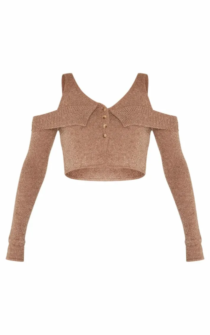 Introducing this taupe boucle knit cold shoulder button up top for your new season staple. Made from a taupe hue boucle knit material with a cold shoulder design and button up fastening, this top is a must have. What’s not to love? Pair with jeans, fresh kicks and simple accessories for a look like no other.