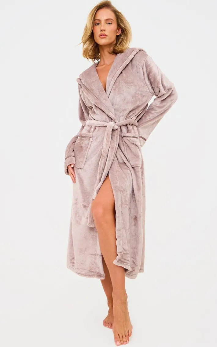 Getting ready for cosy season? You need this taupe fleece hooded maxi bath robe in your life. It’s made with the softest taupe fleece fabric, a front tie fastening and a hooded design to get you through those colder nights. Put together the ultimate glam yet cosy look with matching undies and your night-time essentials.