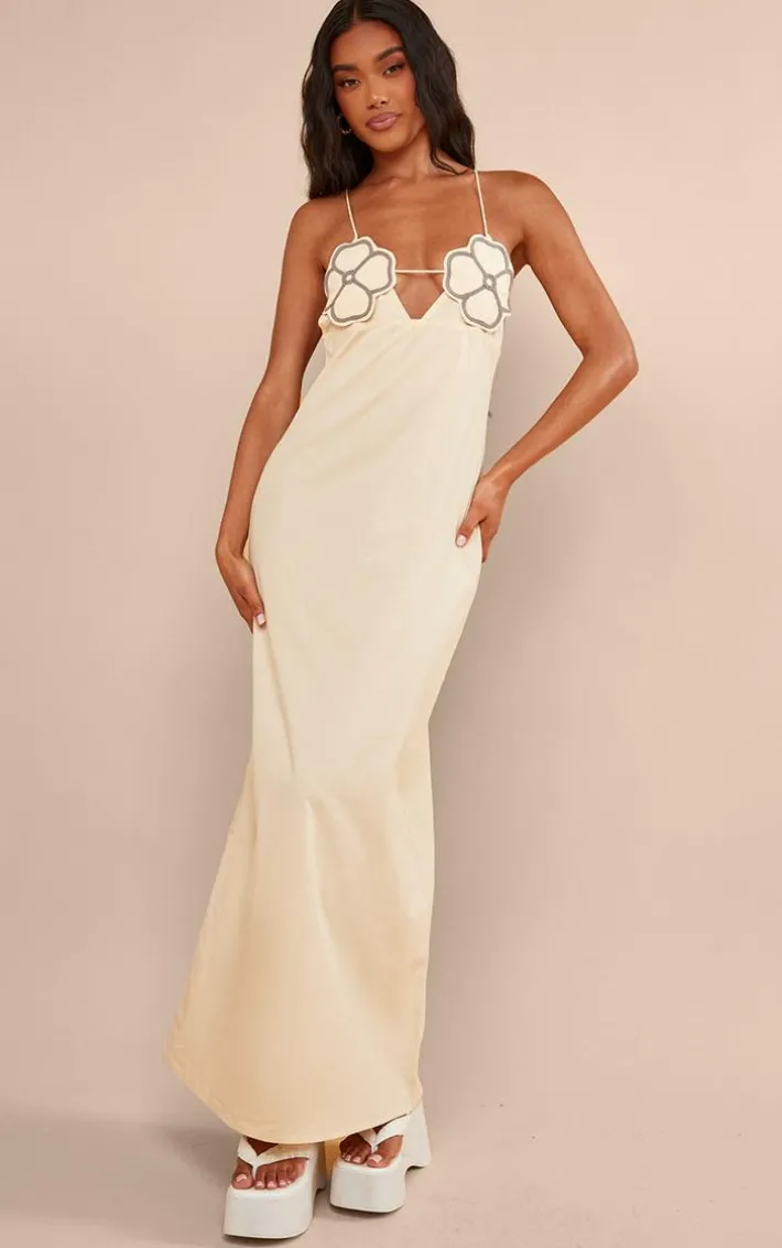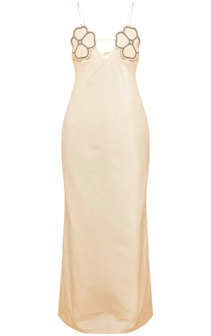 You are guaranteed to make heads turn in this taupe linen look floral applique maxi dress. Brought to you in a taupe hue linen look material with a floral applique design and a flattering maxi fit, how can you not fall in love? Style this linen look dress with flatform sandals and a clutch bag for an effortlessly chic look we’re loving.