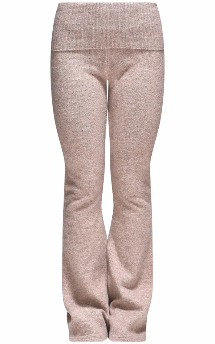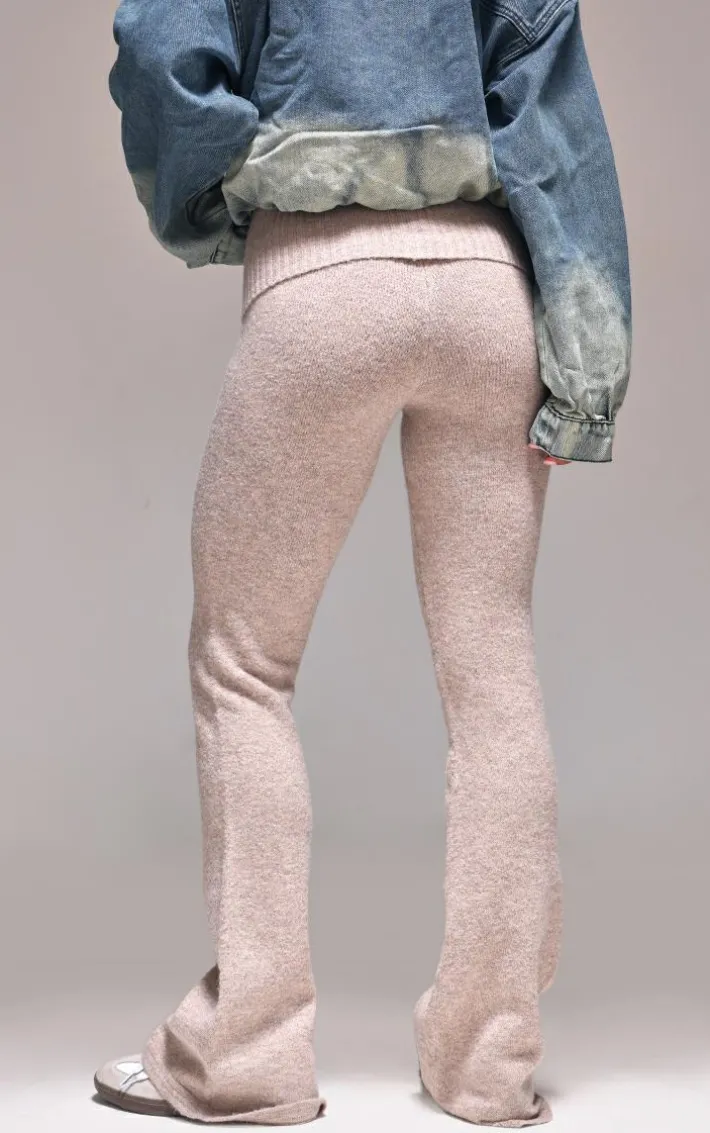 You won’t have to sacrifice comfort for style with these taupe melange soft knit foldover waist flared pants. Brought to you in a taupe melange soft knit material with a foldover waist design and a flattering flared leg fit, what more could you want? Style these flared pants with a denim jacket and sneakers for an everyday look we just can’t get enough of.