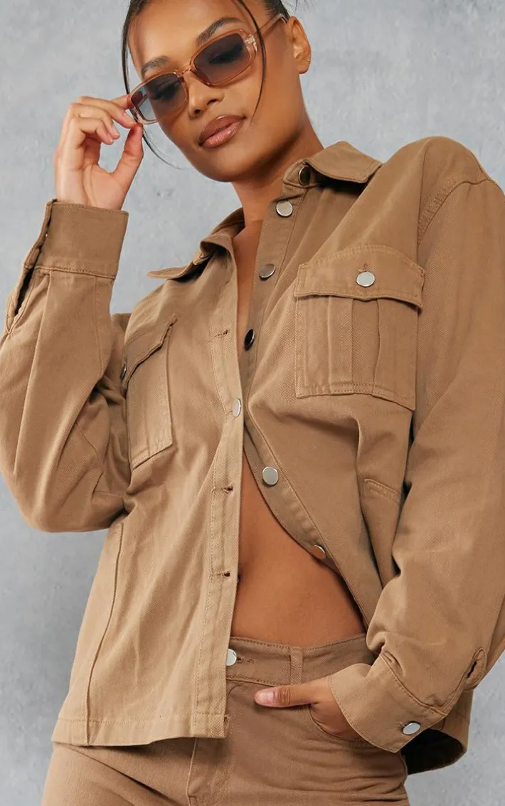 Taking the top spot on our new season hitlist is this taupe oversized utility pocket denim shirt doll. Made from a taupe denim material with an oversized fit and utility pocket details, what’s not to love? Whether you’re having a chilled off-duty day or a shopping date with the dolls, this shirt is the answer to all your what-to-wear dilemmas. Pair with the matching cargo pants, chunky sneakers and gold accessories for a vibe that won’t go unnoticed.