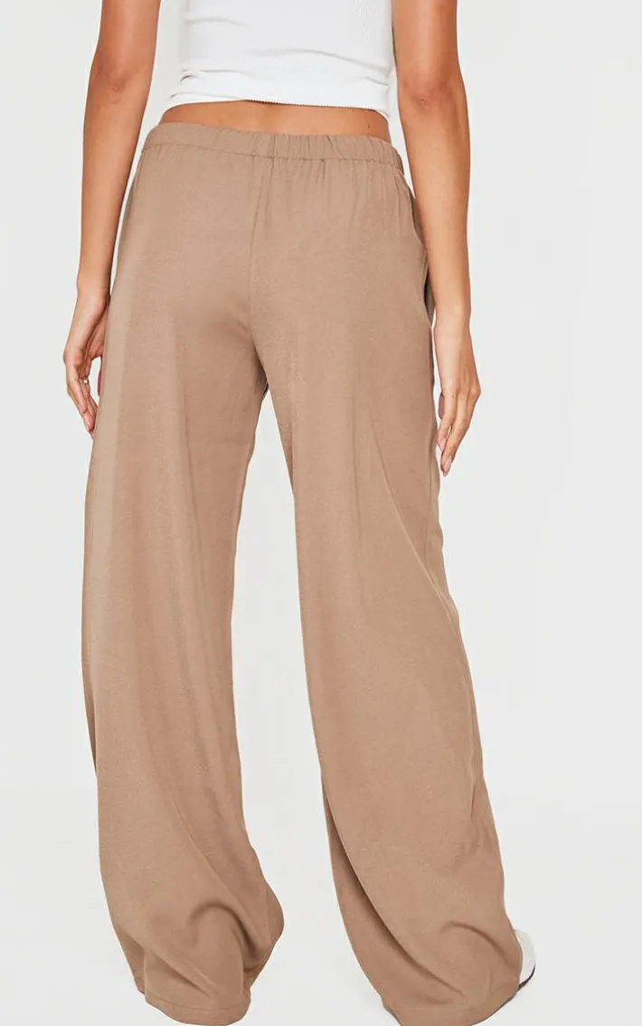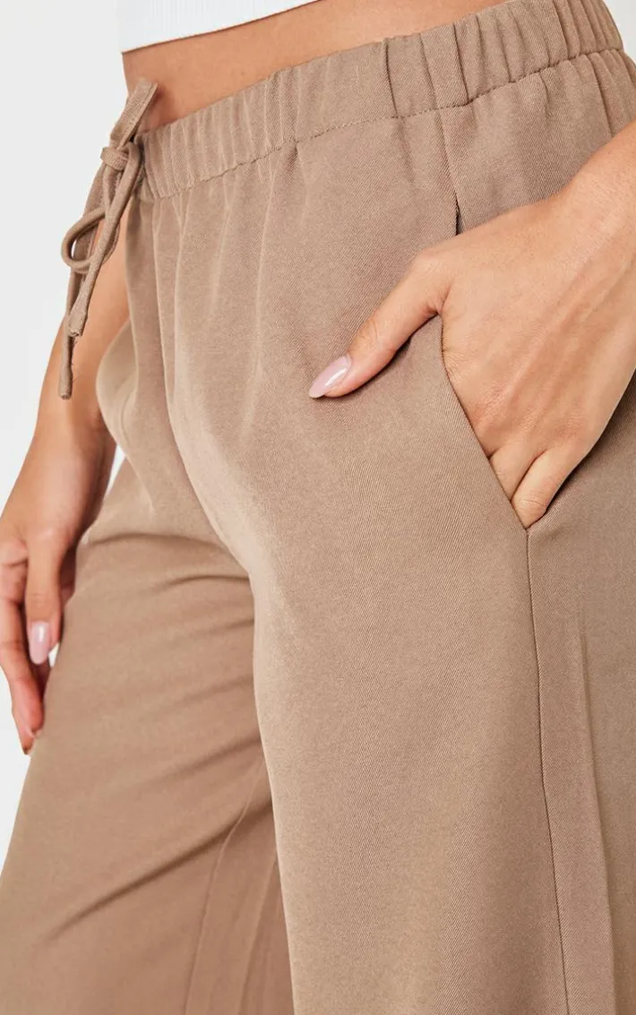 Elevate your basics collection with these taupe premium woven drawstring waistband low rise pants. Brought to you in a neutral taupe hue, with a premium woven material, drawstring waistband detail and flattering low rise design, perfect for those throw on and go moments. Style with a white Vest top and a pop of color in your cap for an off-duty finish.