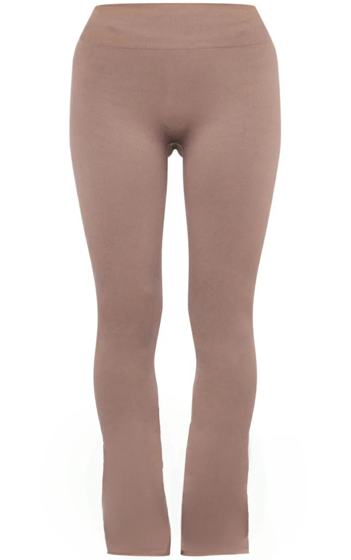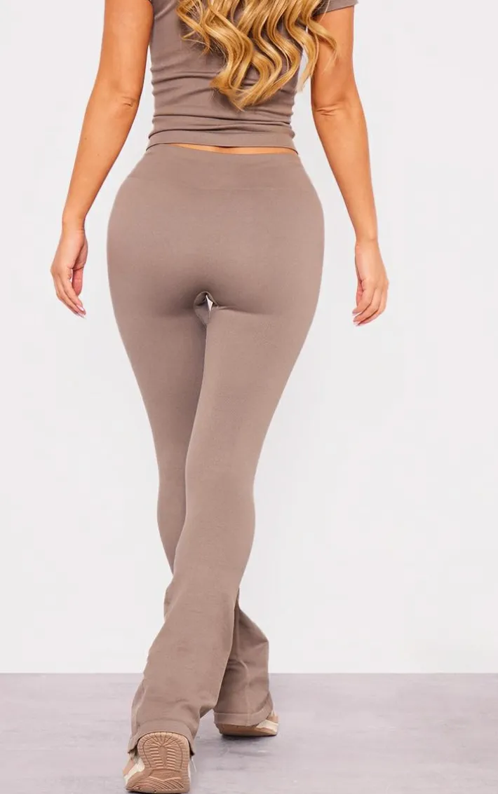 We’re seriously obsessed with these taupe seamless high waist flare yoga pants for your new season wardrobe. Whether you’re running errands or heading to the gym, these yoga pants are at the top of our hitlist. With a taupe seamless material, a high waist and a flared fit, how could you not be in love? Simply add the matching t-shirt, chunky kicks and a baseball cap for a flawless finish.