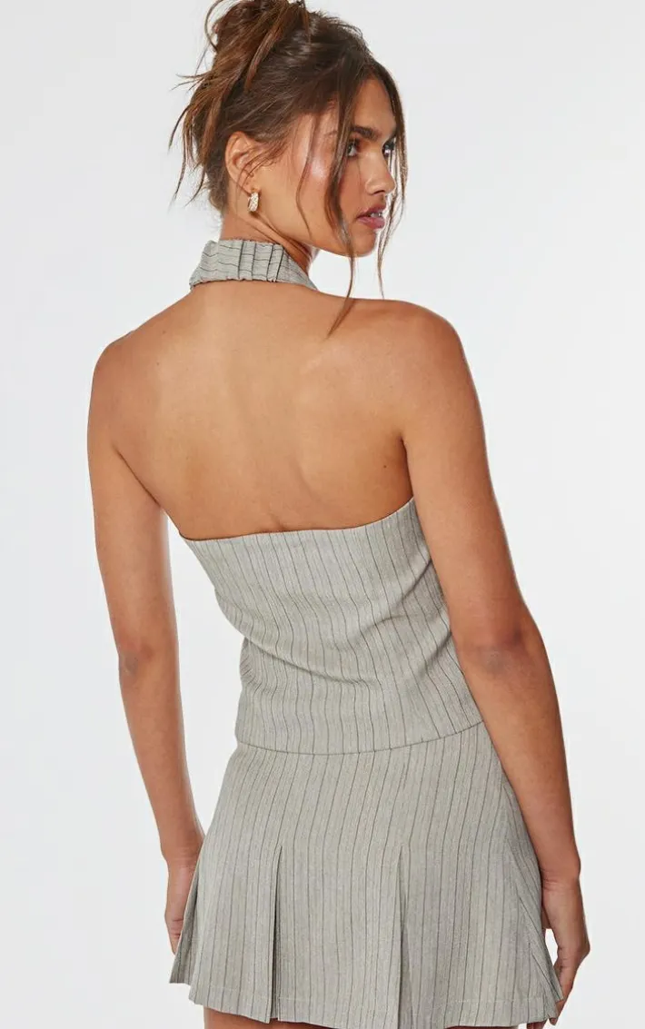 Your wardrobe is calling out for this taupe tailored woven herringbone halterneck top for your new season look doll. Brought to you in a taupe woven material with a tailored design and a herringbone detailing, how could you resist? Team with the matching mini skirt and your fave shades for a weekend-worthy finish everyone is obsessing over.