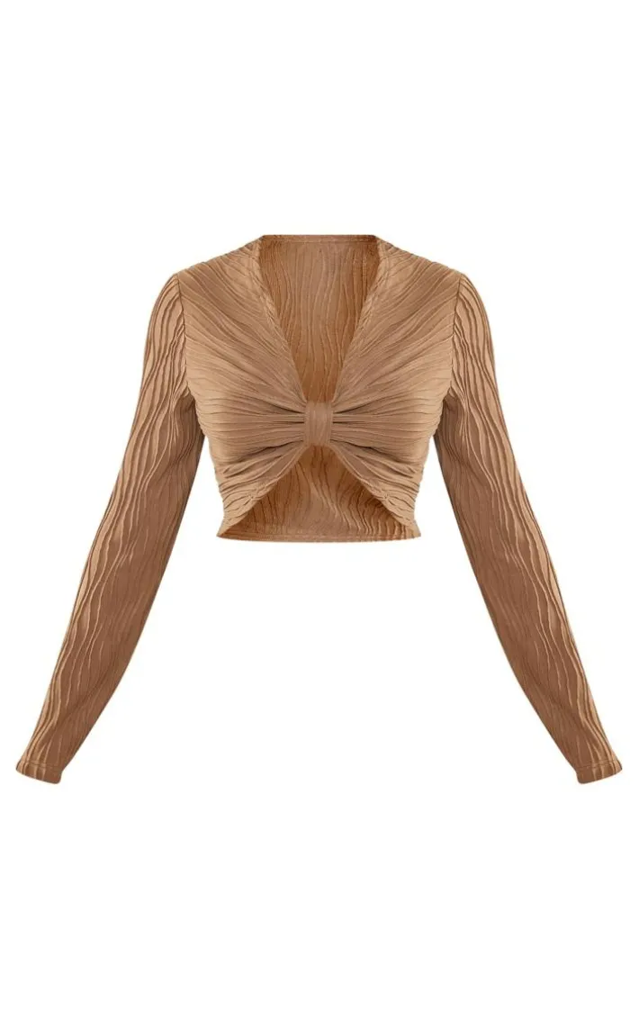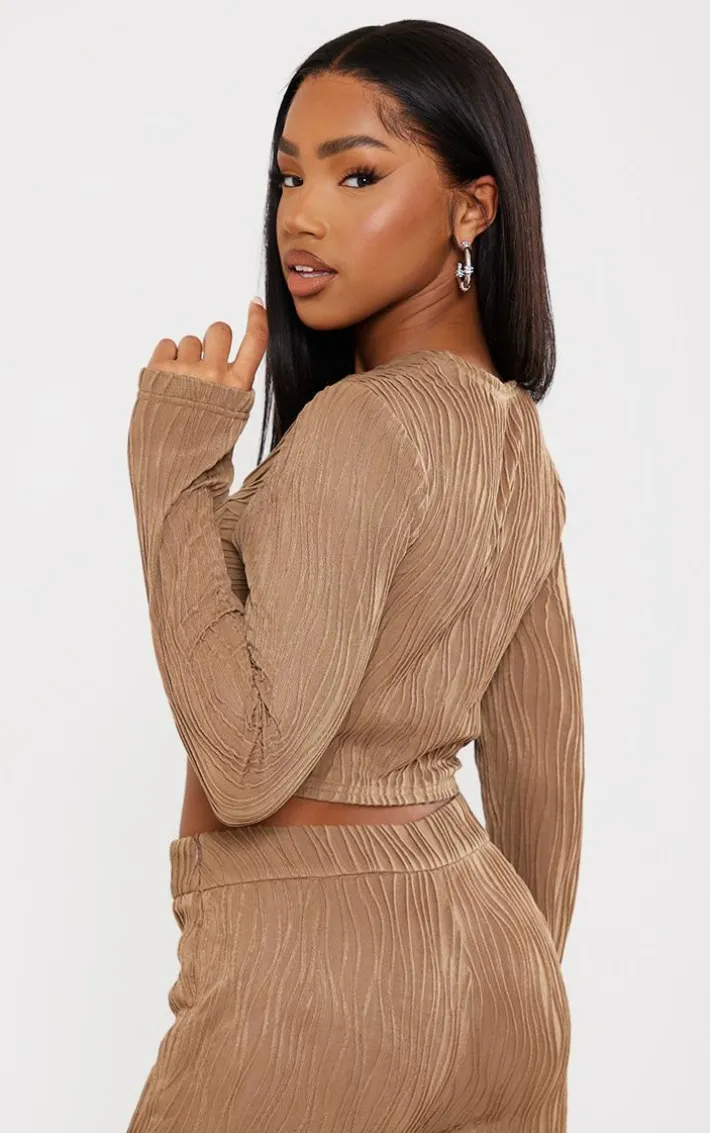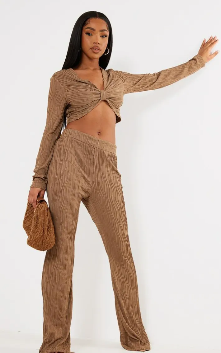 Weekend styling has never been more simple with this must-have taupe textured twist front long sleeve top, you’re sure to be earning all the likes. This top is made with a taupe textured material with a twist front design and long sleeves, how could you resist? Simply pair with the matching bottoms, slip-on clear heels and a clutch bag for a dreamy date night we can’t get enough of.