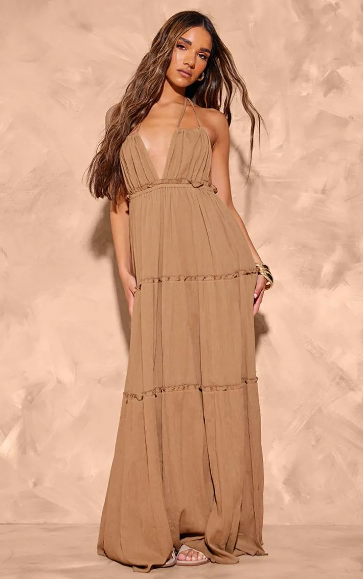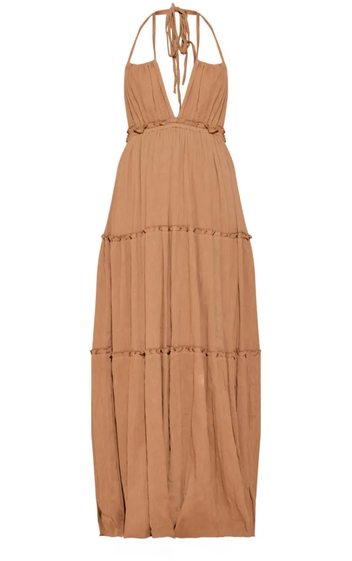 Make styling look effortlessly chic in this taupe tiered halterneck maxi dress. Brought to you in a taupe hue material with a halterneck design, tiered detailing and a maxi length, how can you say no? Style this maxi dress with heels and statement gold accessories for a look that is sure to gain all the compliments.