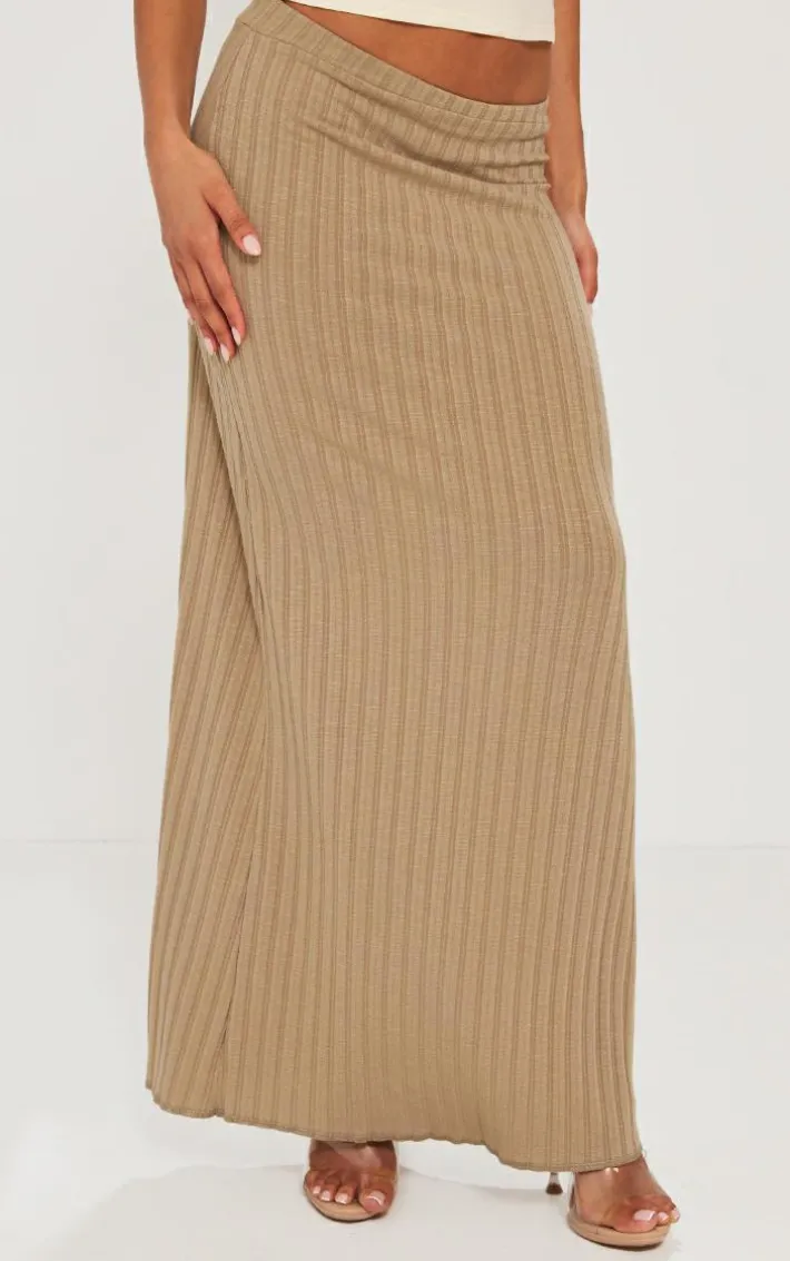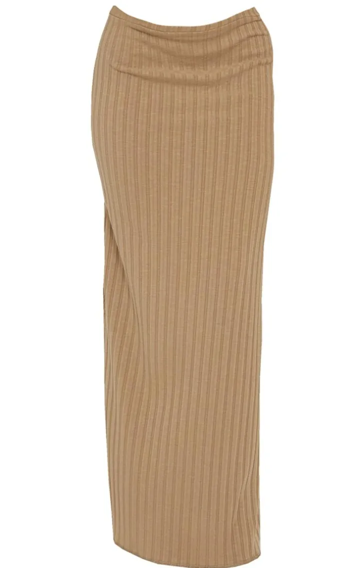 Switch up your new season wardrobe with this taupe wide rib drapy maxi skirt, it’s a definite yes from us whatever your plans. This skirt features a taupe wide ribbed material with a drapey design and a maxi length, you’re sure to be earning all the likes. Pair this maxi skirt with your fave top and simple accessories for a flawless finish.