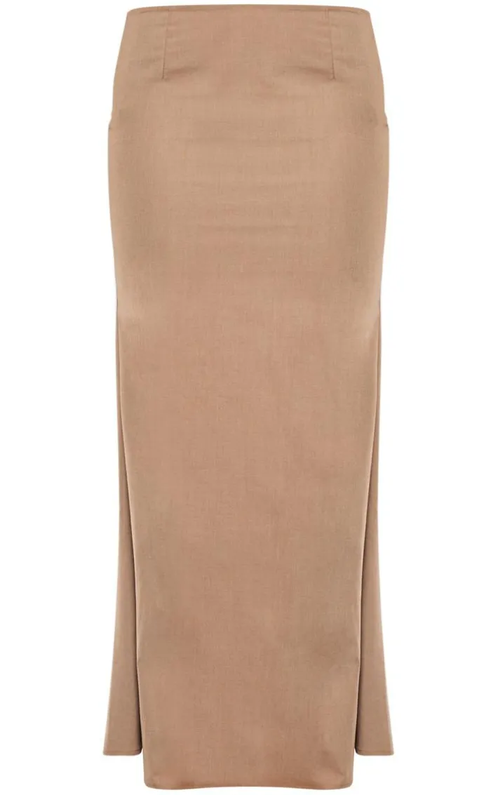 Say hello to your new season staple with this taupe woven tailored fishtail maxi skirt. Brought to you in a taupe woven material with a fishtail design and a tailored fit, what more could you want? This maxi skirt is here to banish any of your what to wear dilemmas. Style with high heels and accessories for a look that will have you being the topic of everyone’s conversation.