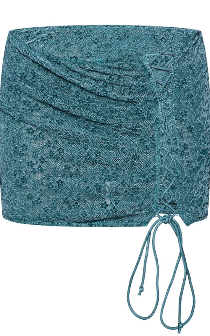Your new style – just elevated. Look chic in this teal velvet lace mini skirt. Brought to you in a teal hue velvet material with a lace design, this mini skirt is perfect for those weekend plans. Style with the matching top, court heels and simple accessories to elevate your look.