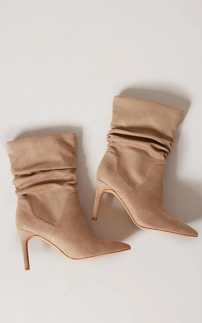 Elevate your new season wardrobe with these unreal truffle faux suede point toe ruched high heeled ankle boots, you won’t be able to resist. These boots are made using a truffle faux suede material with ruched detailing and a high heel, what more could you want? We are seriously obsessing over these boots. Team with your fave outfit of the day to earn all the compliments.