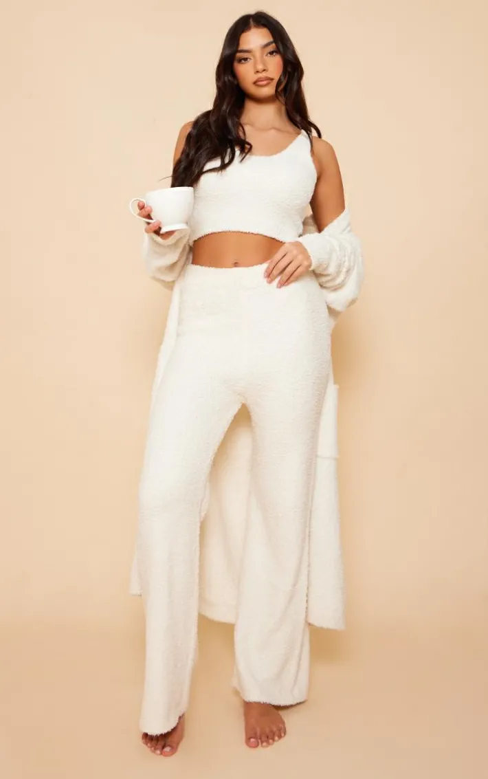 Your chilled days are calling for this vanilla cosy longline bralette. This bralette is brought to you in a vanilla hue with a longline design and a super cosy fit, what’s not to love? Complete the look by styling this bralette with the matching cardigan, pants and your comfy slippers for a look that we can’t stop crushing on.