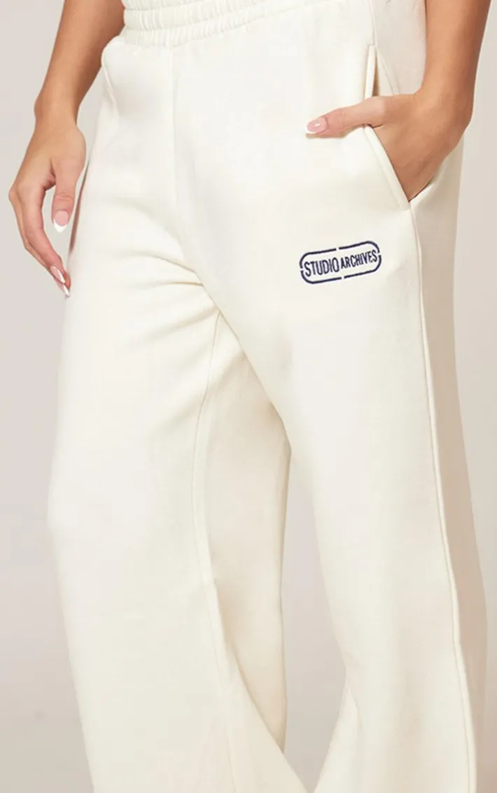 Add some seriously chic vibes into your new season wardrobe with these vanilla studio embroidered wide leg sweatpants. Brought to you in a vanilla hue material with an embroidered ‘Studio’ detail and a wide leg style, you’ll be adding these sweatpants straight to your basket. Just add the matching Sweatshirt, a basic top and your go to accessories to elevate the look further.