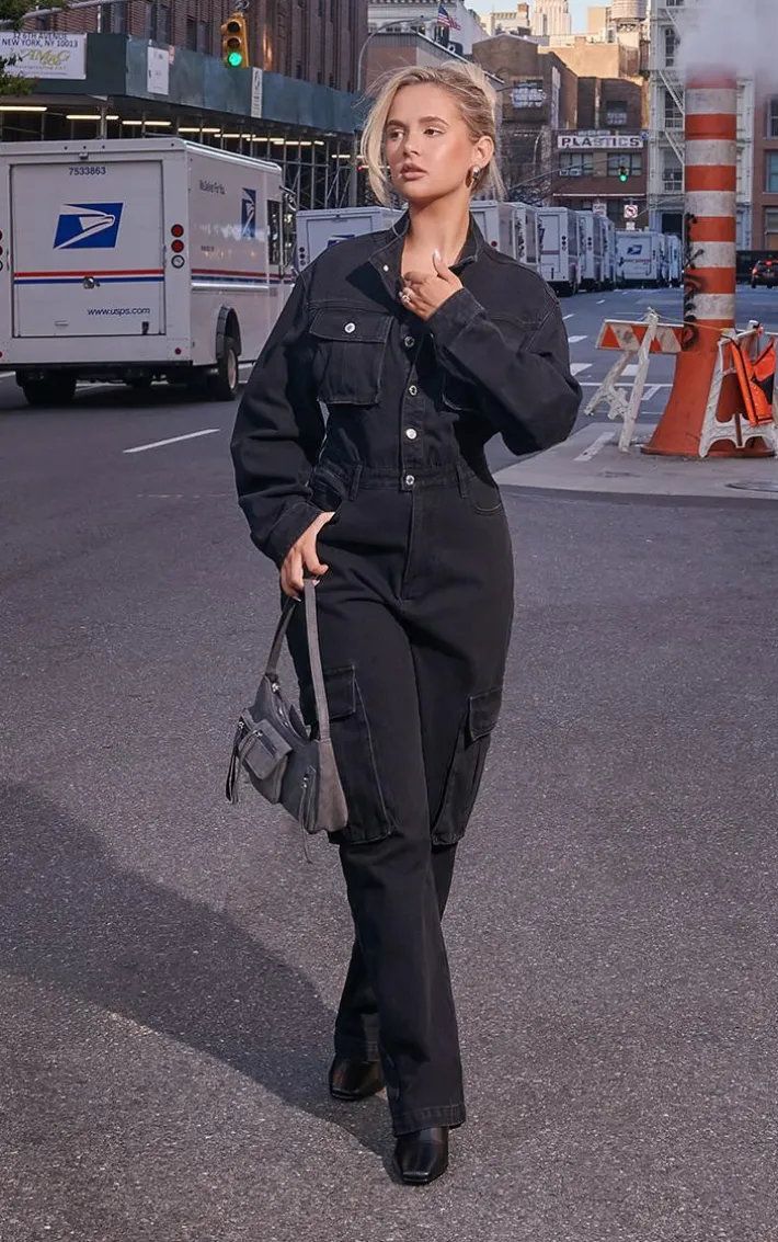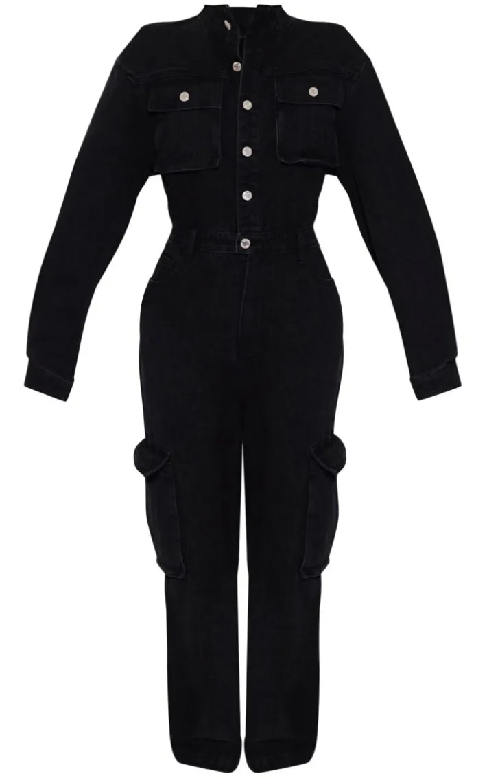 Nail all the major trends this season with this washed black denim cargo wide-leg jumpsuit. Brought to you in a washed black denim material that adds all the fresh feels to your look and a cargo design that gives you that extra edge, how could you say no? This jumpsuit is everything you’re looking for and more this season. Whether you dress this jumpsuit up for the weekend with stiletto-heeled boots or down for an everyday look, you are sure to gain all the compliments.