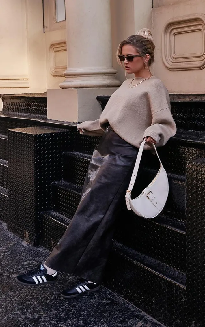 When your new season wardrobe calls for a little drama this washed black faux leather maxi skirt, you’re sure to be earning all the likes whatever your plans. Brought to you in a washed black faux leather material with a maxi length and a figure-worshipping fit, what’s not to love? Team this faux leather skirt with an oversized sweater, box fresh sneakers and a shoulder bag for a look everyone will want.