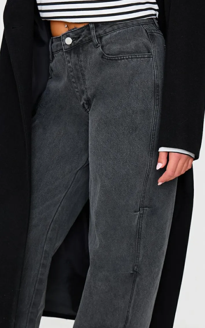 These washed black turn up hem barrel style jeans are a must-have for your off-duty wardrobe. Made with a washed black denim, turn up hem and barrel leg design, we’re obsessed. Own the look by pairing these barrel style jeans with a striped top, oversized coat, go-to shoes and simple accessories. It’s a yes from us.