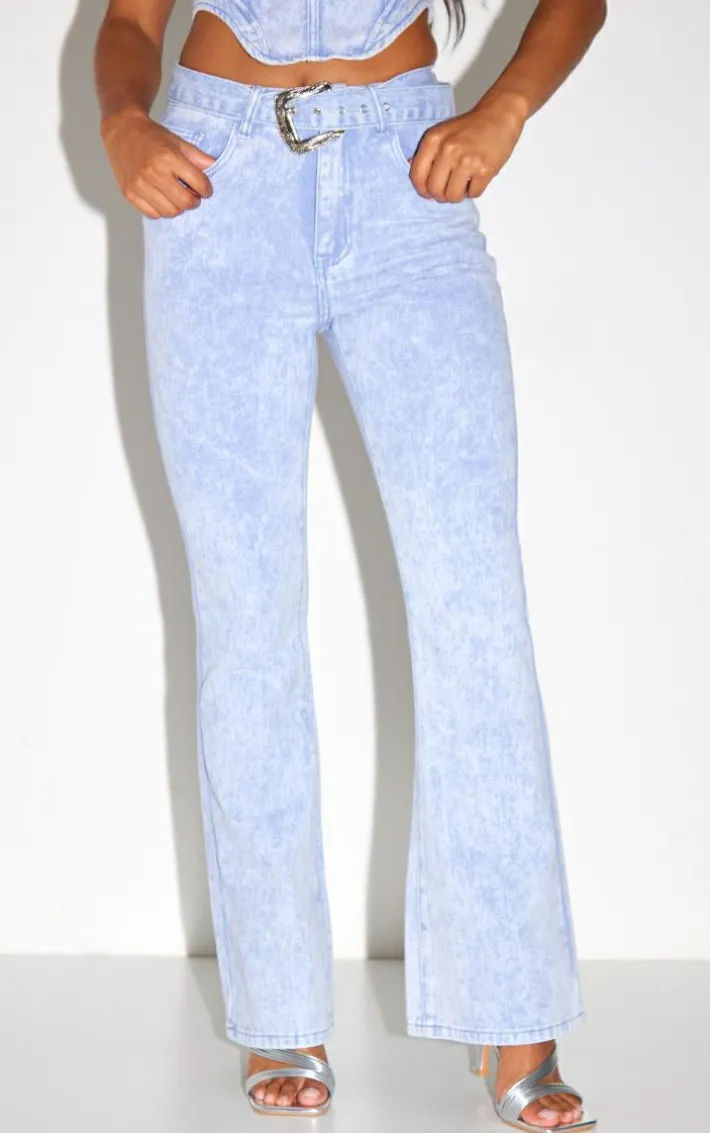 Level up your weekend wardrobe with these washed blue western belt flared jeans and be sure to earn all the compliments. Brought to you in a washed blue denim material with a western belt detail and a flared fit, these jeans are sure to be nailing all the major trends this season. Whether you dress them up for the weekend or style for an everyday look, you are sure to gain all the compliments. Shop the look and team with the matching top, metallic heels and a silver shoulder bag for a fresh weekend-worthy finish.