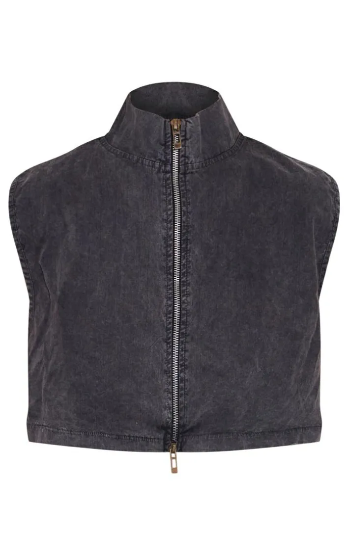 Take the stress out of everyday styling with this charcoal washed twill zip up top. Brought to you in a charcoal hue washed twill material with a zip front design, how can you say no? We are loving this zip up top styled with the matching cargo pants, sneakers and gold accessories for a look that is sure to have you earning some serious style points all season long.