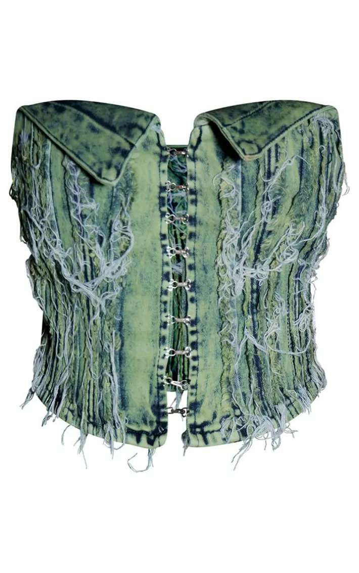 You can never have too many bandeau tops , that’s why this washed green tint distressed hook and eye fold over bandeau top. Brought to you in a washed green tint material with a hook and eye design giving you a flattering fit you won’t be able to resist. Its fold over detail and bandeau fit are perfect for those upcoming plans. Team with your fave mule heels and the matching skirt to make a statement this season.