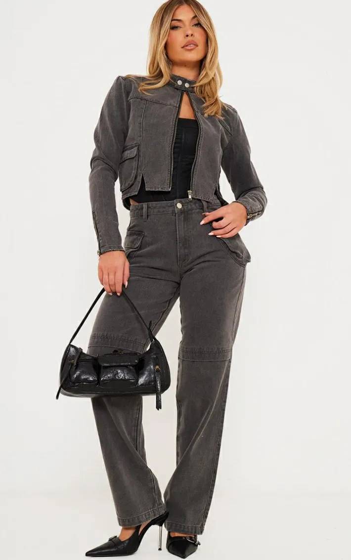 We’re loving denim this season and this washed grey acid wash zip up seam detail cropped denim jacket is sure to take any look to the next level. Made from a washed grey acid wash denim material with seam detail and a zip up fastening, how could you say no? Why not shop the look and pair this denim jacket with the matching jeans, court heels and your fave accessories for a look that won’t go unnoticed?