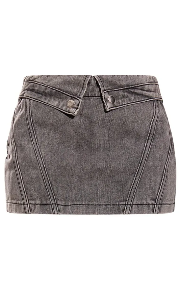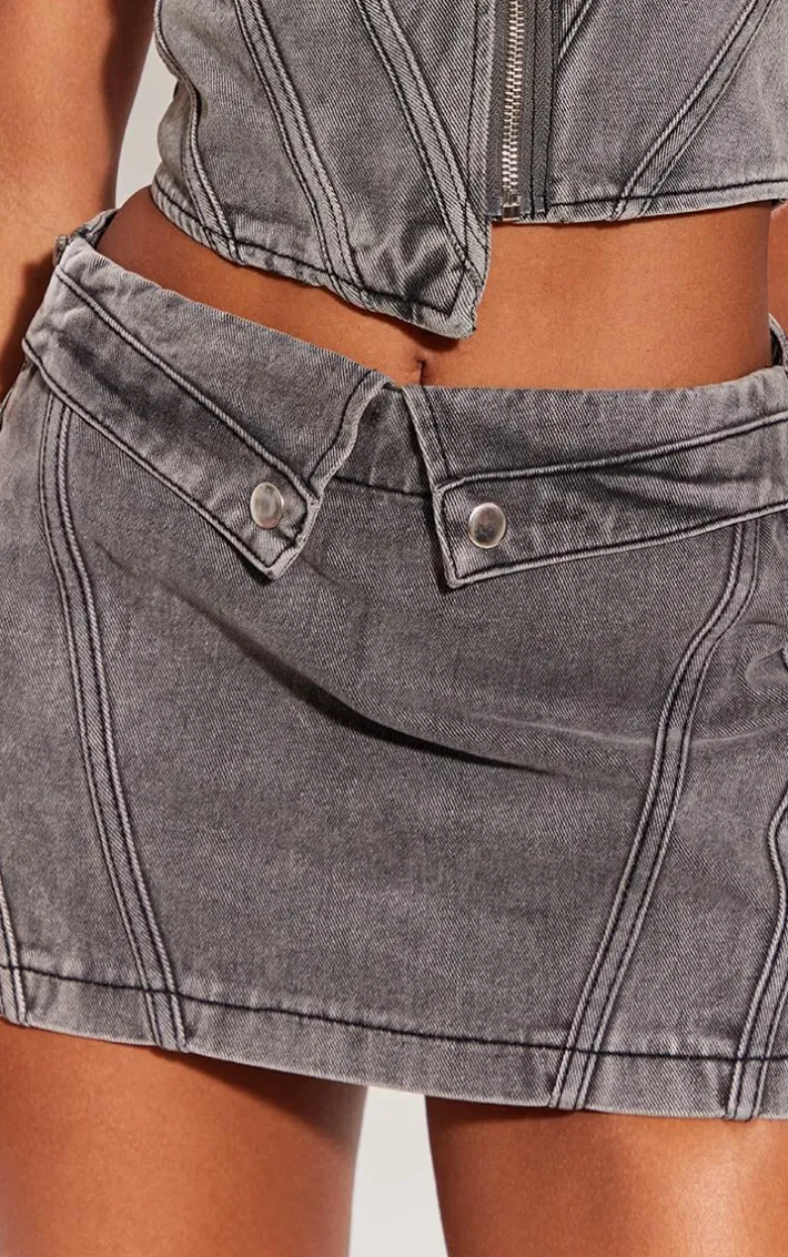 Say hello to the must-have skirt of the season with this washed grey biker waistband detail denim mini skirt. Brought to you in a washed grey denim material with a biker waistband detail and a figure-flattering fit, how could you say no? This mini skirt is perfect for dressing up for the weekend or for switching up your everyday look, what’s not to love? Team with the matching top, knee-high boots and a shoulder bag for a flawless finish.