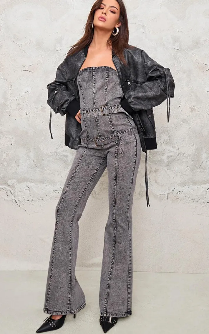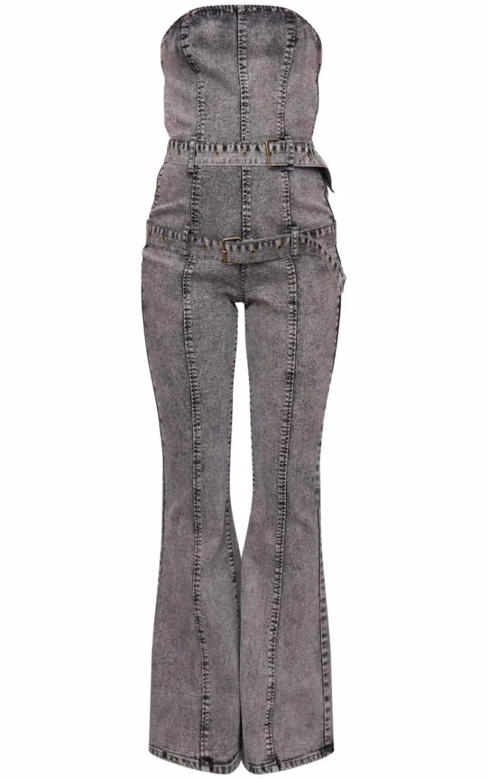 This washed grey buckle detail straight leg denim jumpsuit is a must have in your collection. Brought to you in a washed grey denim material with a buckle detail, what’s not to love? This denim jumpsuit has a straight leg fit that will have you standing out no matter what. Team with a pair of court heels and your fave accessories for a fool proof finish.