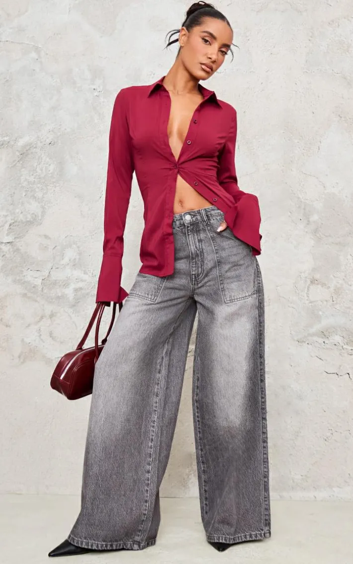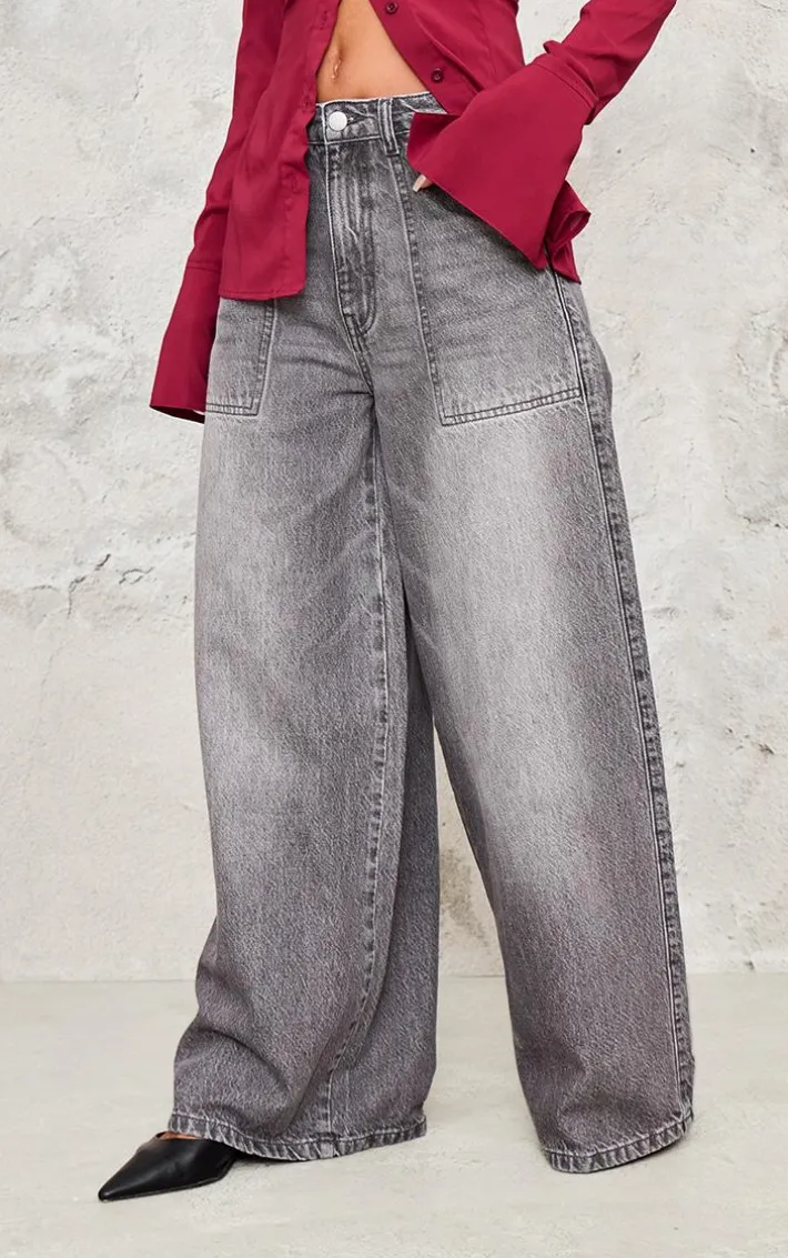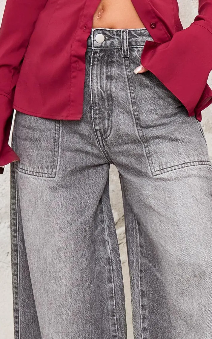 These washed grey mid rise wide leg jeans are the perfect addition to your denim collection. Brought to you in an edgy washed grey shade, with a mid rise fit and wide leg design, you’re going to be the best dressed at any occasion. Pair with your fave black heels, a statement shirt and a shoulder bag to steal all the stares.