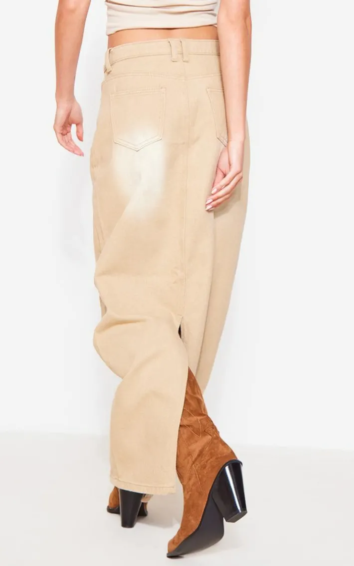Say hello to your new season staple with this washed stone denim maxi skirt. This women’s maxi skirt is brought to you in a washed stone denim material with a maxi length, how could you say no? Whether it’s your everyday styling or you’re looking for your next weekend fit then this maxi skirt has you covered. Style effortlessly with a crop top, western boots and a cowboy hat for a look that will turn heads for all the right reasons.