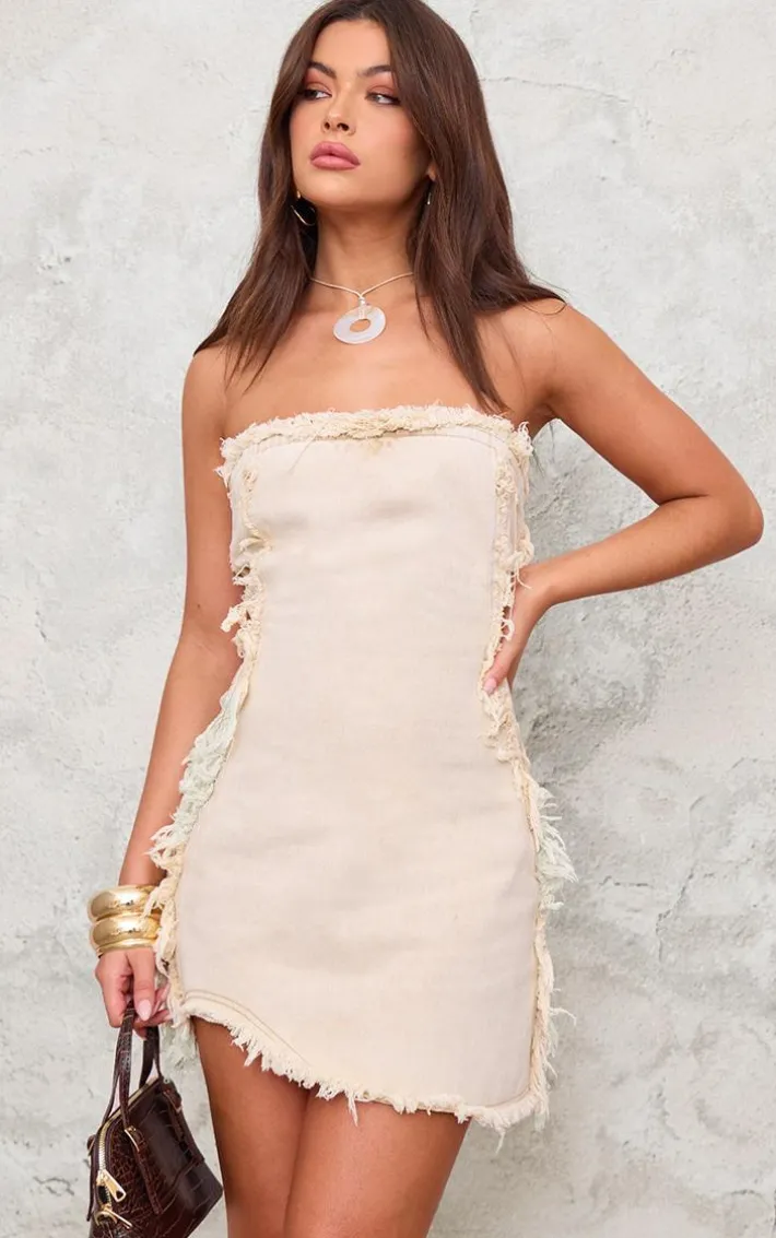 Add this washed stone frayed seam curved hem denim mini dress to your weekend collection. Brought to you in an edgy washed stone shade, with a frayed seam design and curved hem shape, what’s not to love? Team with some statement gold accessories and a shoulder bag for a look like no other.