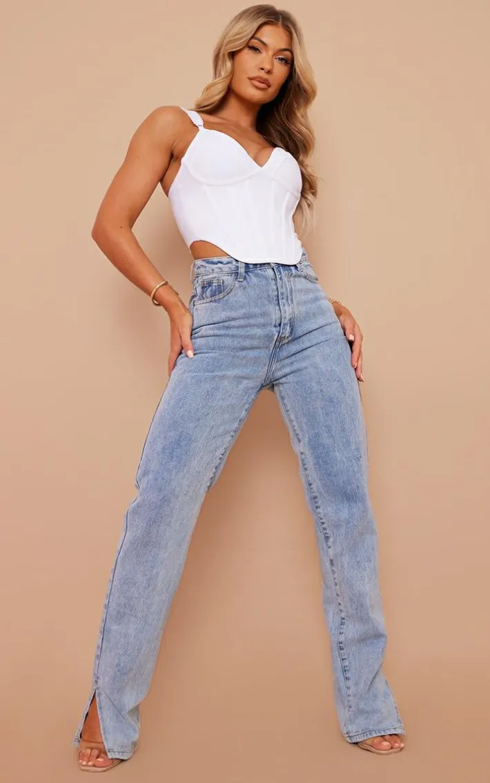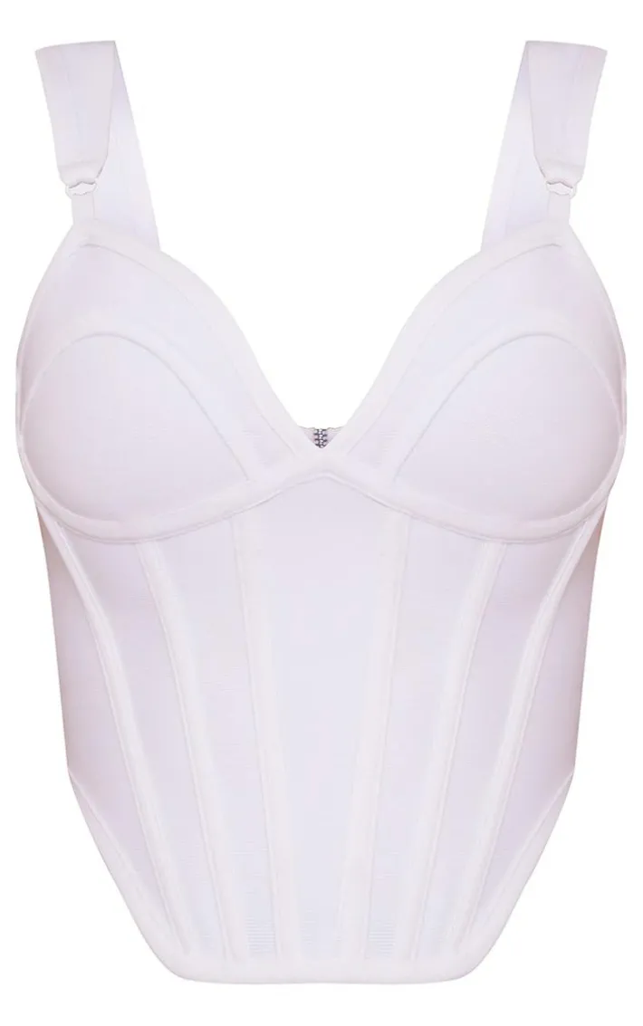 A corset is always a good idea and we love this one. Featuring a white bandage material with a dipped hem and bust detailing, what’s not to love? It is the perfect piece for your ‘Jeans and a Nice Top’ combo.