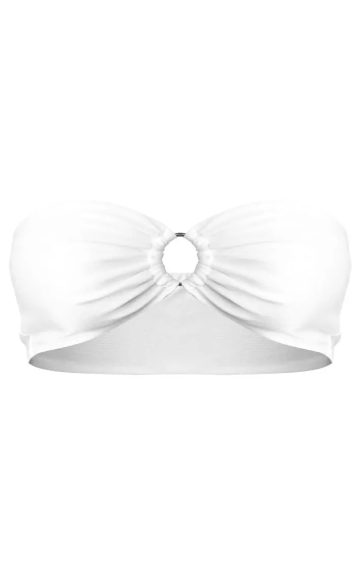 Show off your unreal glow this season with this white bandeau o ring bikini top and be sure to gain all the compliments. Brought to you in a white hue material with an o ring detail and a bandeau neckline, how could you not be in love? A must-have essential for your vacay wardrobe, this bikini top is everything we’re loving and more. Team with the matching bikini bottoms, shades and luxe accessories for a look that won’t go unnoticed.
