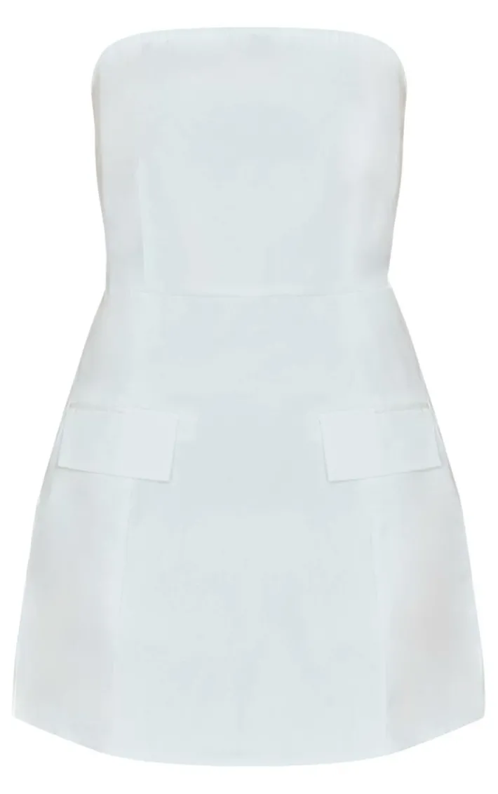 We can’t get enough of this white bandeau pocket detail shift dress. Brought to you in a white hue material with a bandeau neckline and pocket detail, this shift dress is calling your name. Style with mesh ballet flats, simple accessories and a chic mini bag for a look everyone will be asking about.