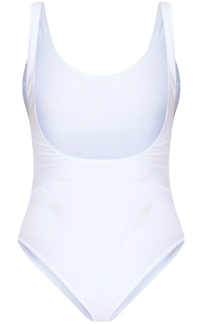 This basic swimsuit will give you the ultimate poolside vibes. Featuring a white material with a scoop neck design. we’re in love. Wear this swimsuit with sandals and statement accessories for a look that we are crushing on.