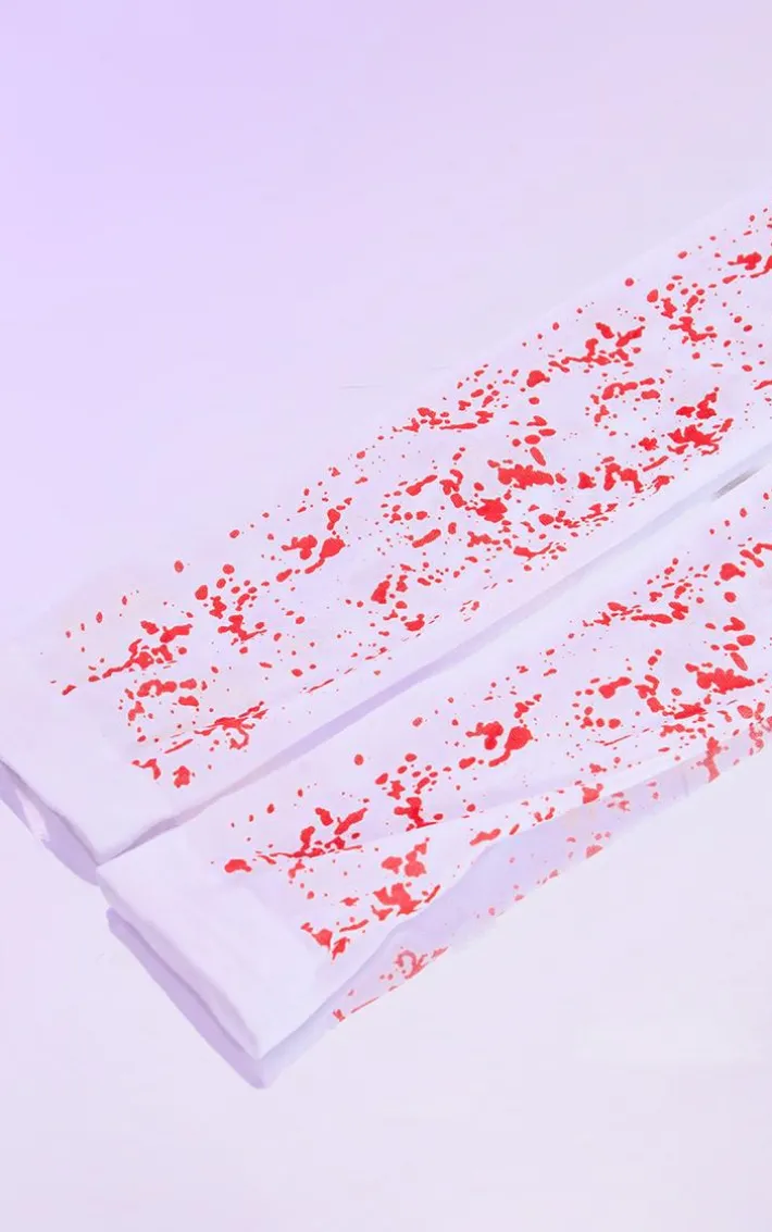 Take your Halloween outfit to a whole new level with these white blood stained stockings. Brought to you in a white material with a red blood stain design and a long fit, we just can’t get enough. Style these blood stained stockings with a red outfit for a Halloween look that will really make a statement.