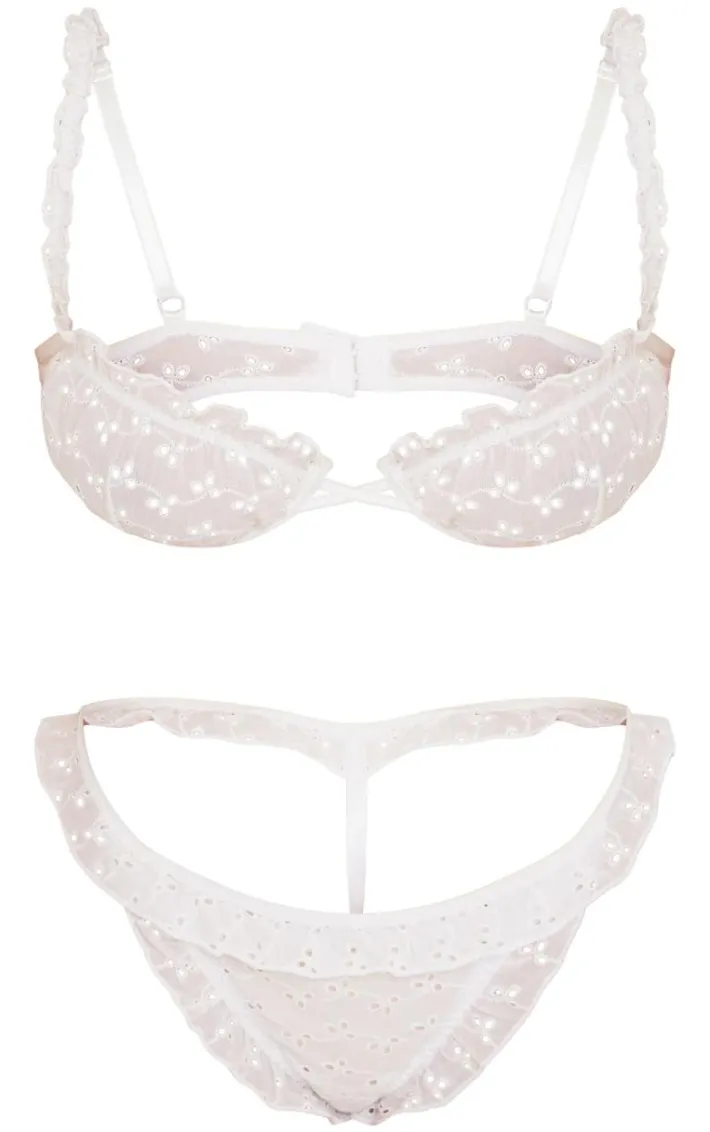 Bring all the fiercely feminine feels to your lingerie collection with this white broderie frill edge thong. Made from a white hue broderie material with a frill edge design, how can you resist? Style this white thong with the matching bra and statement accessories for a look they won’t be able to take their eyes off.