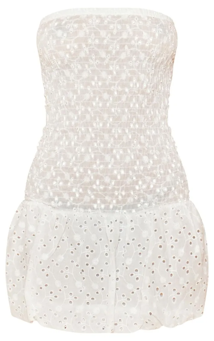 Stay on trend this season wearing this white broderie puffball mini dress. Brought to you in a white broderie material with a puffball design, this mini dress is sure to earn you all the compliments. Style this broderie dress with cowboy boots and your go-to accessories for an unreal look.