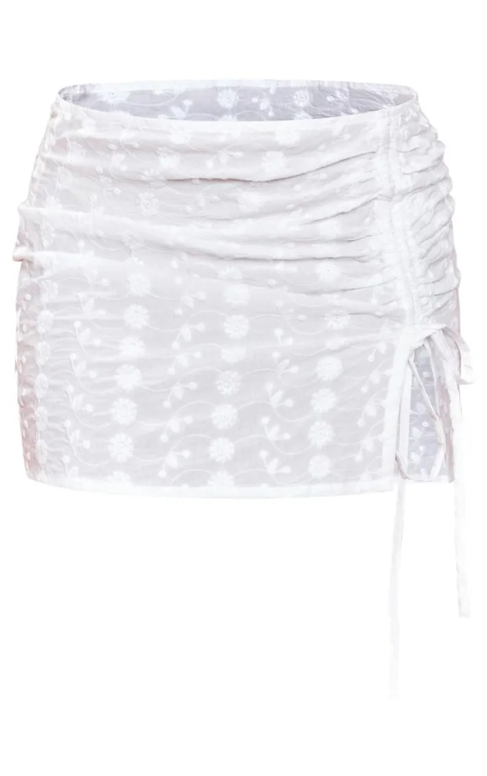 This white broderie ruched detail mini skirt is sure to solve all of those ‘what to wear’ dilemmas. Brought to you in a white broderie material with a ruched detail giving you a flattering fit like no other. This mini skirt pairs perfectly with your fave boots, gold accessories and a crop top, we just can’t get enough.