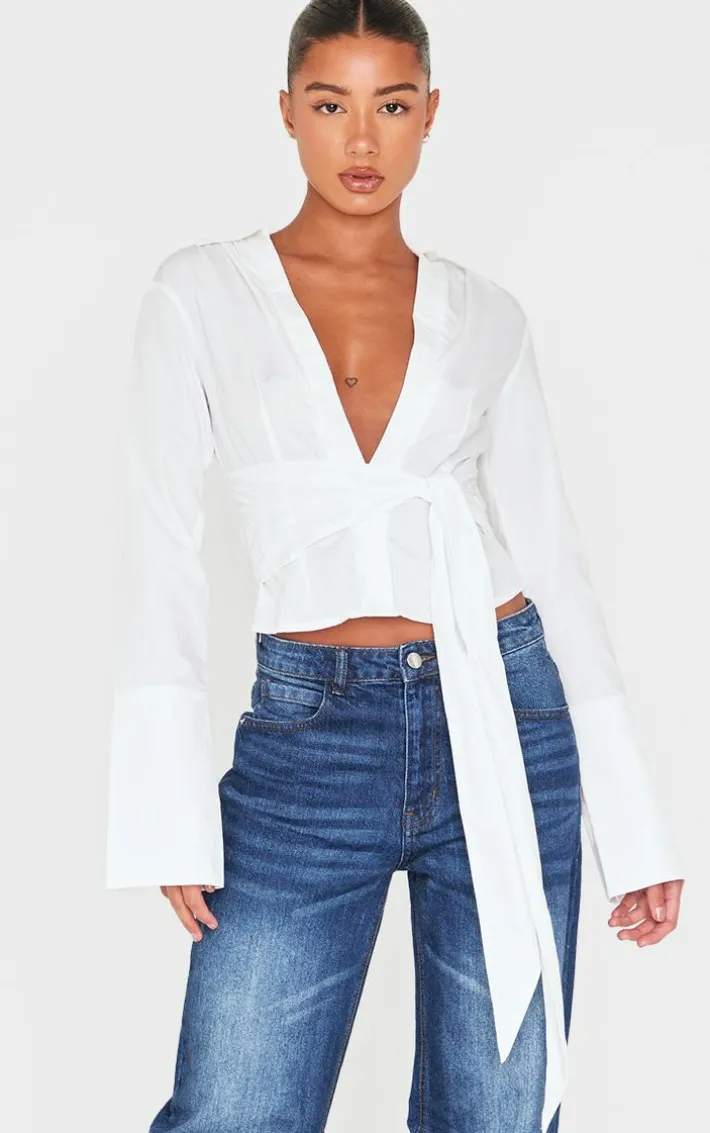 This white cinched tie waist shirt is sure to be a new season essential. Brought to you in a white hue material with a cinched waist design and tie detailing, how can you resist? Style this white shirt with jeans, court heels and a mini bag for a look that is perfect for dressing up or down to suit your plans.