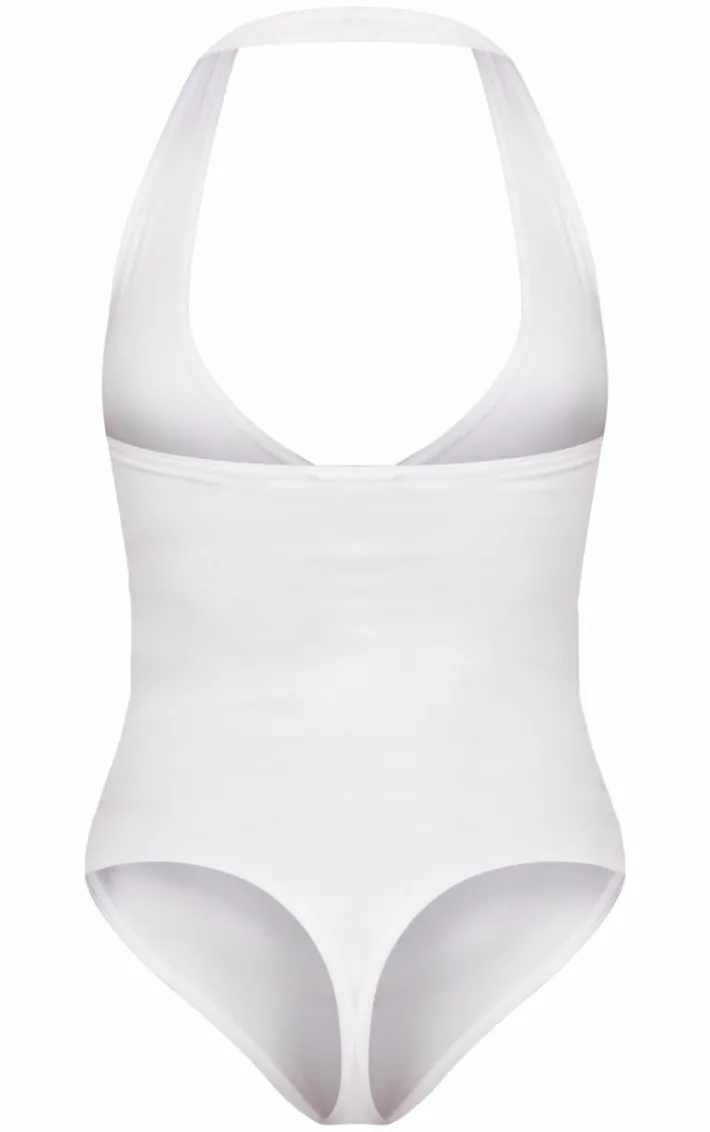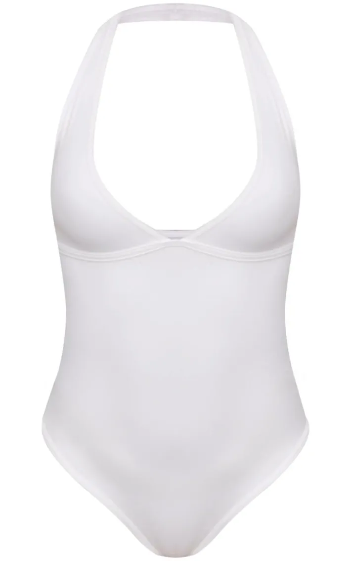 When the weekend calls, so does this white contour halterneck bodysuit. Brought to you in a white material with a contour design and a halterneck fit everyone is obsessing over. This bodysuit is sure to solve all of those what to wear dilemmas. Team with your fave accessories, your go-to jeans and a pair of heels for a look that will make you center of attention.