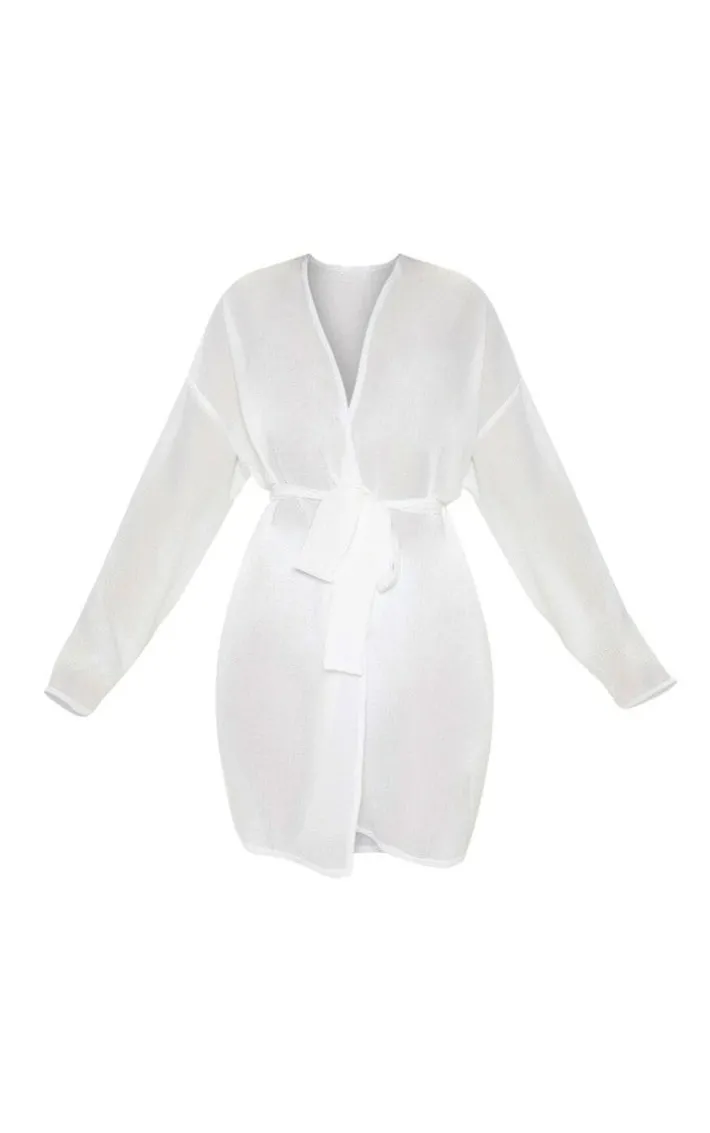 White Crinkle Textured Short Beach Kimono