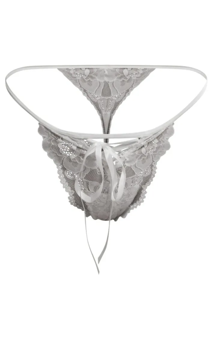 Turn up the heat in your lingerie collection with this white floral lace cut-out thong. Its white floral lace material is the delicate touch that gives your look a super feminine feel. This thong is sure to steal all the stares and will gain you all the compliments. Simply pair with the matching bra and stocking for a dreamy finish.