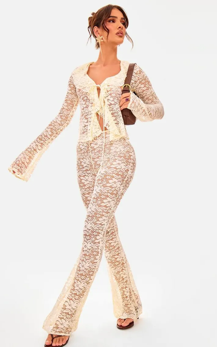 Steal all the stares this season in these white floral lace skinny flare pants. Brought to you in a white hue lace material with a floral design and skinny flare detail, these pants are at the top of our wish list. Style with the matching top, your fave heels and brown mini bag for a chic combo that will turn heads at your next event.