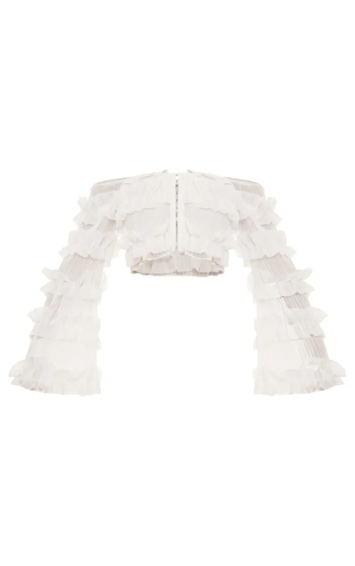 Give your new season wardrobe the ultimate luxe upgrade with this white frill detail bardot top, you won’t be able to resist. This top is brought to you in a white material with frill detailing and a bardot style. Pair this top with the matching skirt, heels and statement gold earrings for a look we just can’t get enough of.