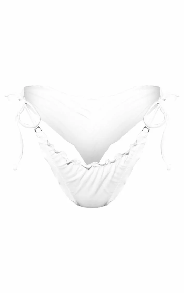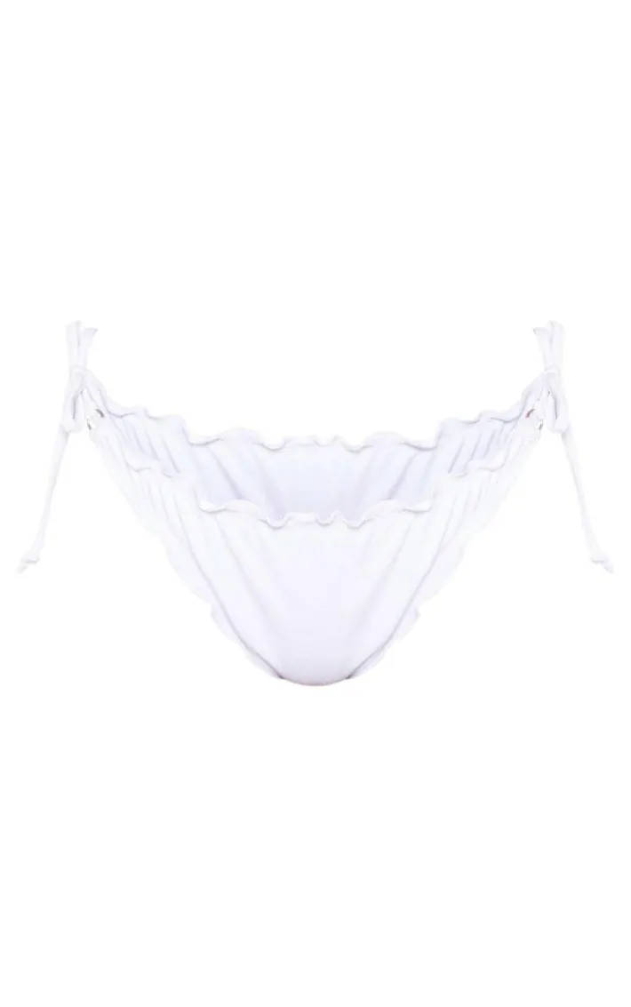 Show off your shape by the poolside in these bikini bottoms. Featuring a white material with a frill edge, ruched back and tie-side design, team with the matching bikini top and statement sunnies for a totally dreamy combo.