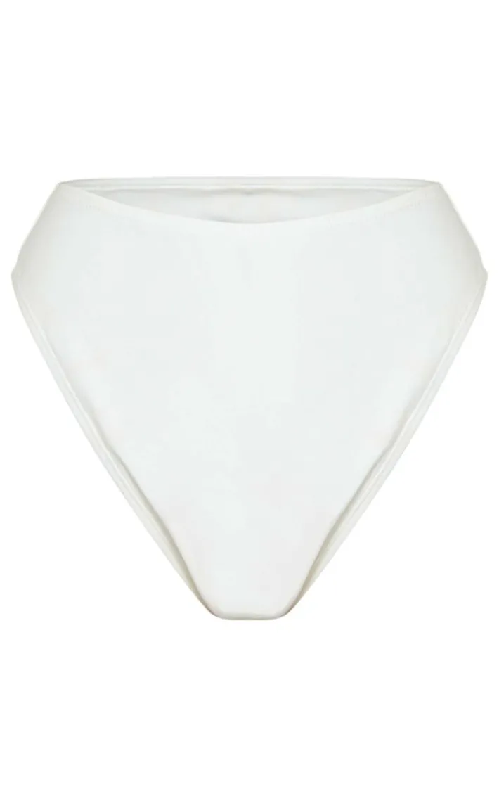 These bikini bottoms are sure to have all eyes on you. Featuring a white fabric with a high waistline and a high leg design, what’s not to love? Just add the bikini top and a sarong for a look that will take you from the poolside to the beach.