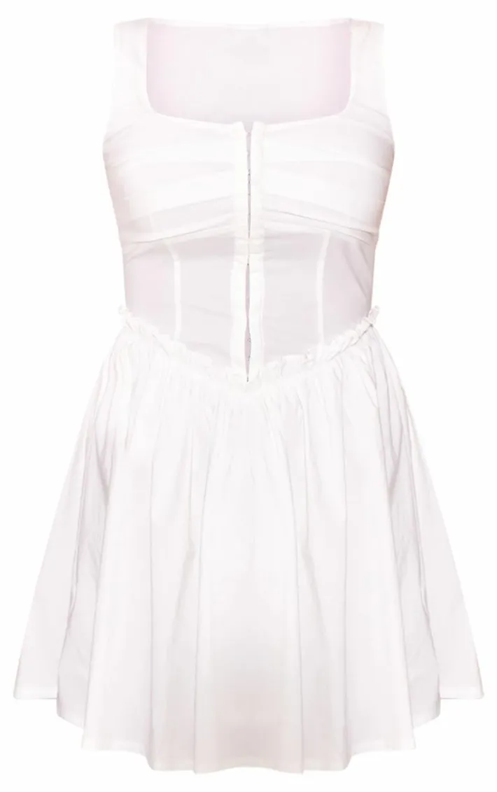 We’re totally in love with this white hook and eye ruched shift dress for your weekend plans. It is made from a white material with a hook and eye design and ruched detailing, how could you not be obsessed? This shift dress gives you endless styling potential and is bound to give your look that extra chic touch. Style seamlessly with silver and statement accessories for a seriously luxe finish.