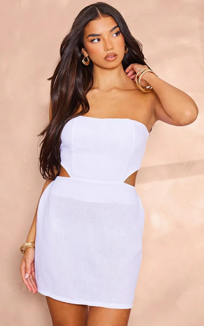 Steal all the stares with this white linen bandeau bow back shift dress. Brought to you in a white linen material with a bow back detail and bandeau neckline, this shift dress is a must-have. Style with sandals and a mini bag for a vacay vibe we’re loving this season.