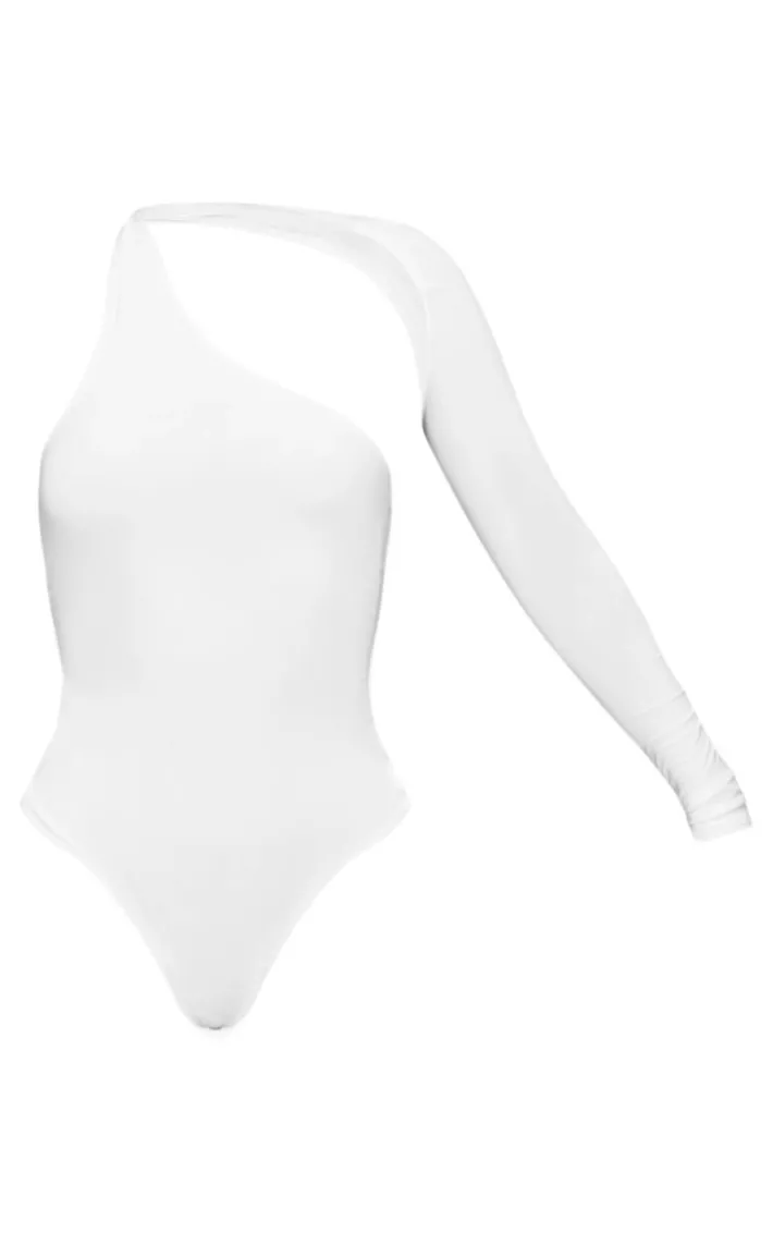 This bodysuit is perfect to elevate your weekend worthy look. Featuring a white material with a one shoulder design and popper fastenings. Style this with a white skirt and barely-there heels for a look we are loving.