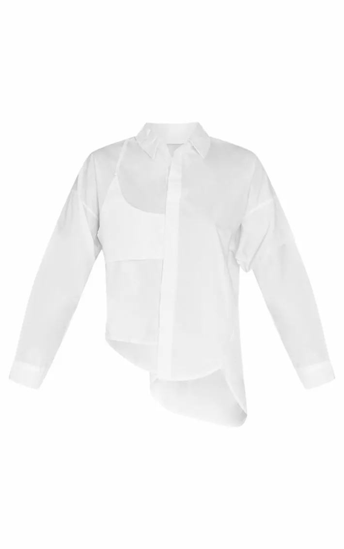 Set major trends with this white oversized asymmetric strap detail shirt. Brought to you in a white material with an oversized fit and an asymmetric design, what more could you want? This shirt has a strap detail we are loving. Team with a pair of jeans and court heels for a look that is perfect for those date nights in your diary.