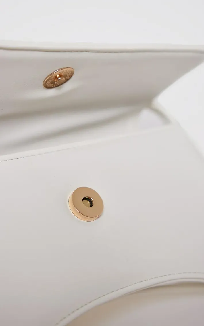 Amp up your outfit of the day with this bag. Featuring a white PU material with a flap over design and baguette shape, this bag ticks all the boxes.