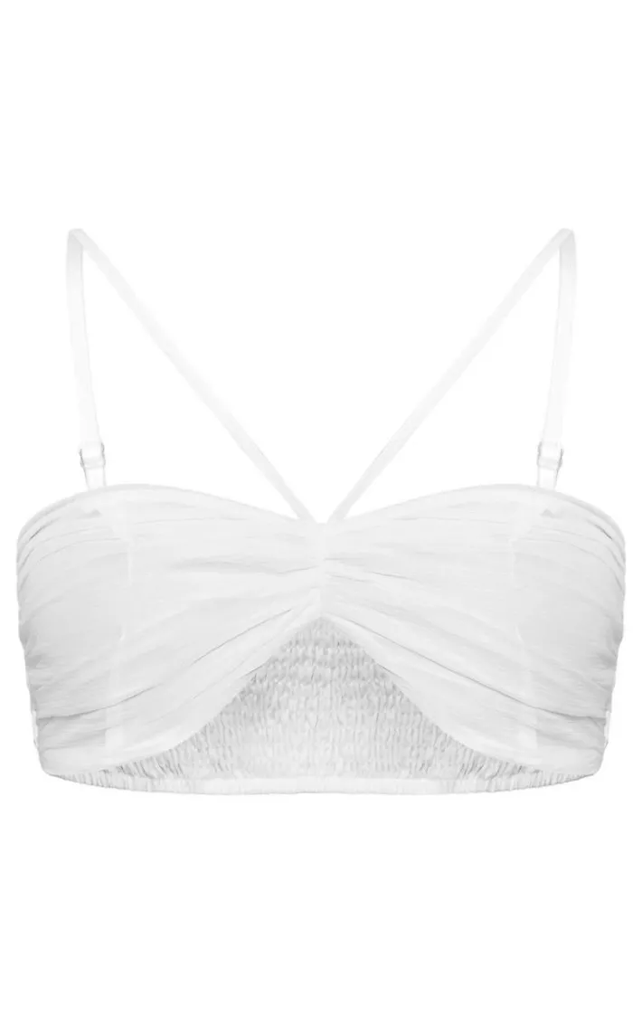 Elevate any look instantly with this white ruched front halterneck bralette. Brought to you in a white material with a ruched front giving you a flattering fit like no other. Its halterneck design is perfect for those day to night looks and beyond. Team this unreal bralette with the matching skirt and your fave gold accessories for a look like no other.